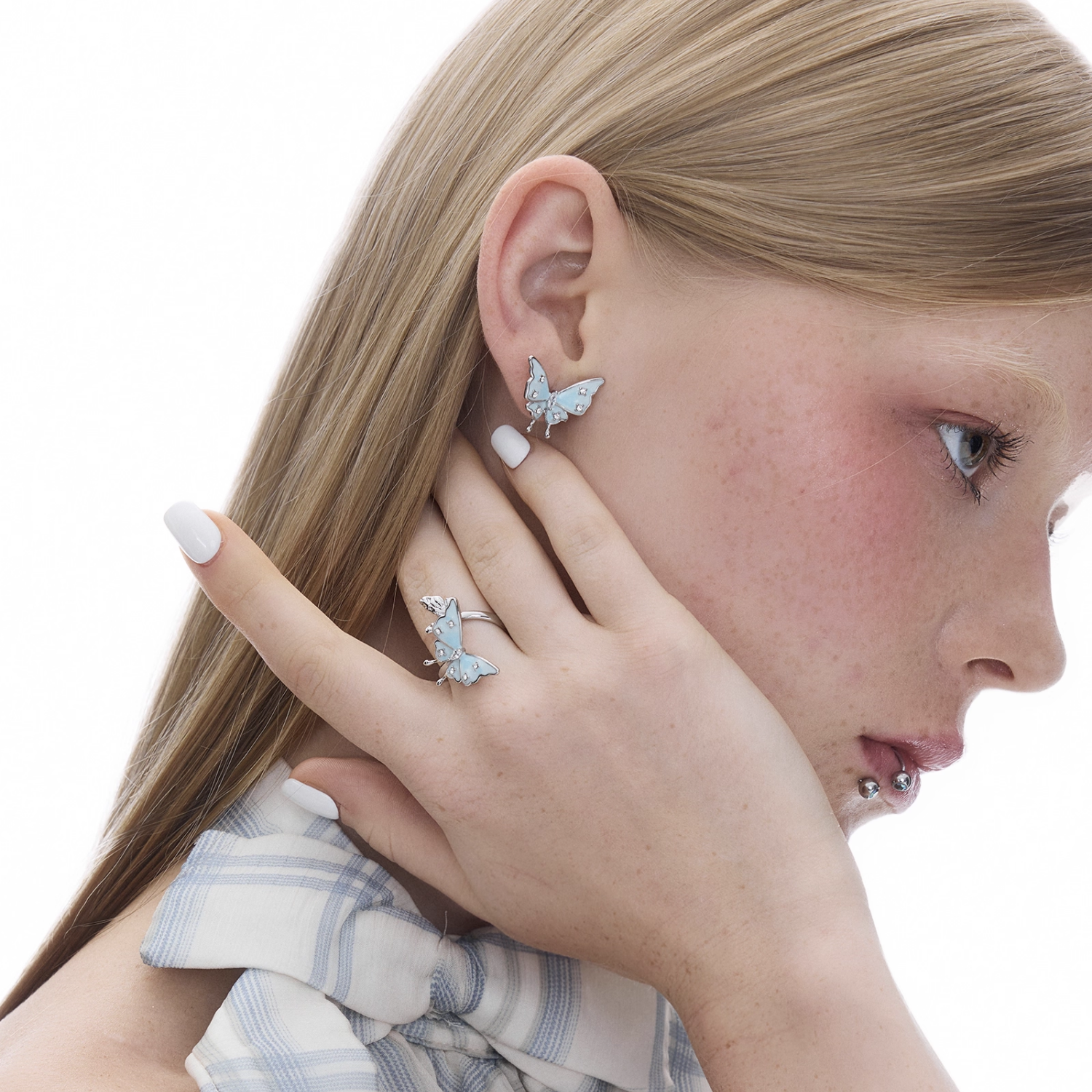 S925 Cubic Zirconia Blue Butterfly Ring[set item]